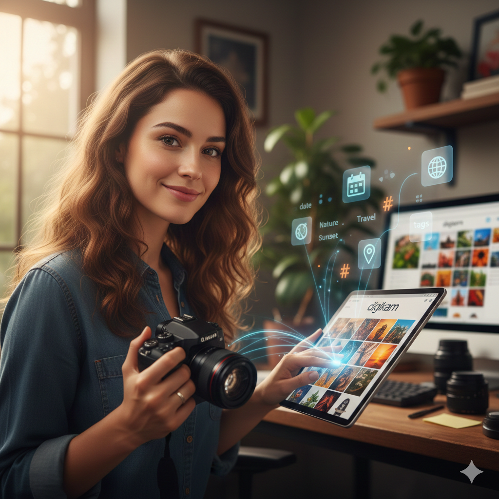 DigiKam позволяет вам изменять EXIF-метаданные, добавлять ключевые слова (теги) и изменять дату ваших фотографий. 🛠️ Редактирование Метаданных в digiKam digiKam — это мощный менеджер цифровых активов, который предоставляет обширные инструменты для работы с метаданными: * Изменение EXIF, IPTC и XMP: Вы можете просматривать и редактировать различные поля в форматах метаданных EXIF, IPTC и XMP с помощью специального редактора. * Изменение даты: Вы можете изменить дату и время снимка, что особенно полезно, например, для сканированных фотографий или при неправильной настройке времени на камере. Это можно сделать через редактирование метаданных или через инструмент пакетной обработки для группы фотографий. * Геолокация (Место): digiKam позволяет добавлять и редактировать географические координаты (геотеги) с помощью интерактивной карты. * Добавление Ключевых Слов (Тегов): Вы можете легко назначать ключевые слова, рейтинги и метки альбомам и отдельным фотографиям, используя боковую п
