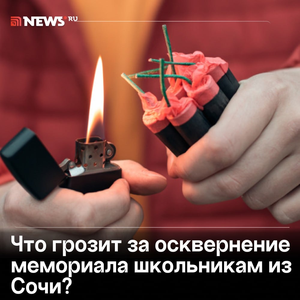 В ответ на пост Лишением свободы может обернуться для школьников запуск фейерверков в памятник «Три солдата» в Сочи, считает юрист. Такой исход в зависимости от тяжести деяния может наступить, если им более 16 лет, сказал NEWS ru Михаил Пирогов. Если же подростки младше, им могут назначить штраф, обязательные работы, заставить возместить ущерб или отправить в исправительное спецучреждение. Если потом они снова возьмутся за старое или это не первый их акт вандализма, то участь подростков будет незавидной. «Повторное осквернение мемориала значительно усугубит ситуацию. Для подростков это может привести к более строгим мерам воздействия, включая уголовное преследование даже при условии несовершеннолетия», — заключил юрист. ⭕️ Подписаться | Мы в MAX | Буст
