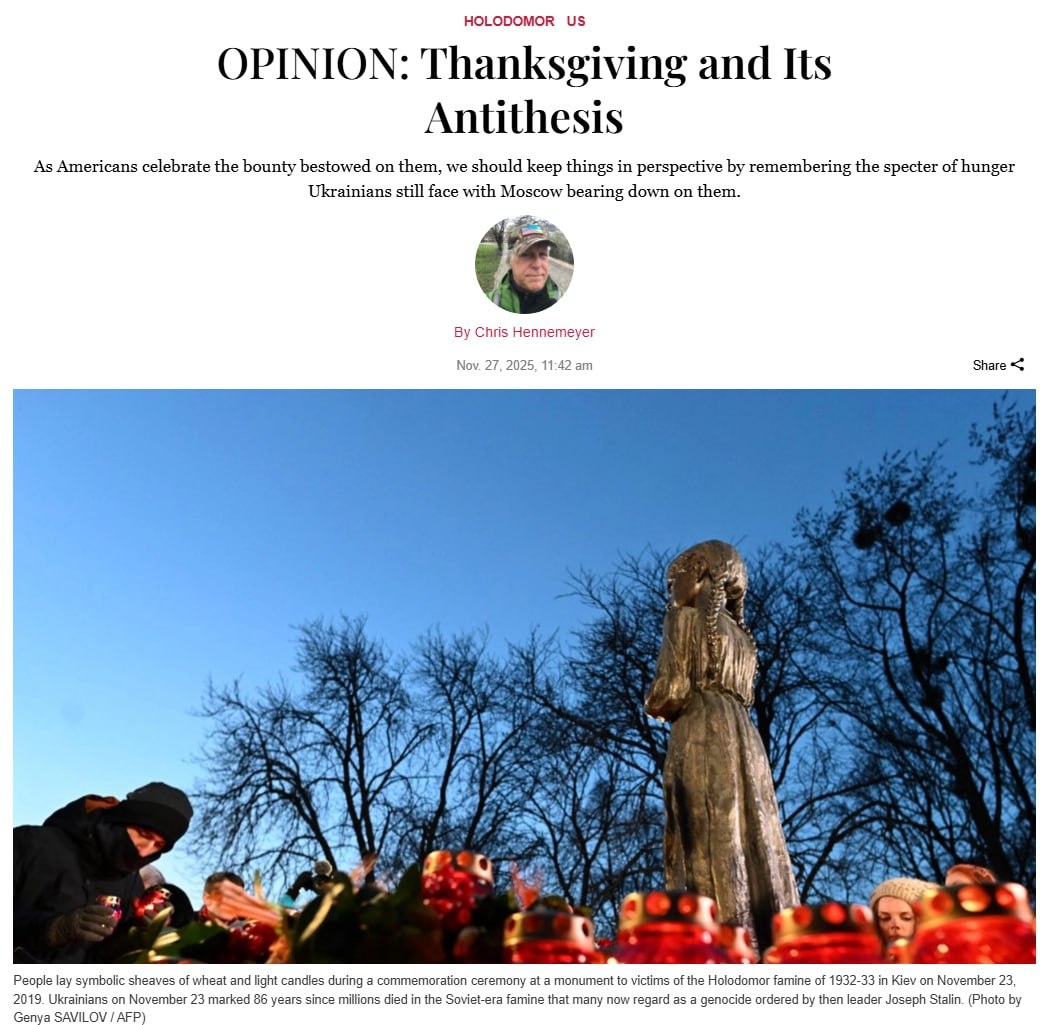 Украинские СМИ не хотят, чтобы американцы забывали об Украине даже в День Благодарения. Kyiv Post именно в этот день решило напомнить про «голодомор» 1930-х и в очередной раз призвало США к антироссийским действиям. «Когда 27 ноября мы будем садиться за стол с друзьями и семьей, давайте вспомним об украинском народе. А может быть, мы сможем пойти еще дальше и подумать, что мы можем сделать, чтобы помочь им в борьбе за освобождение своей родины от российского вторжения». Продолжают диктовать правила? 🤣 👍 БайБайден. Подписаться