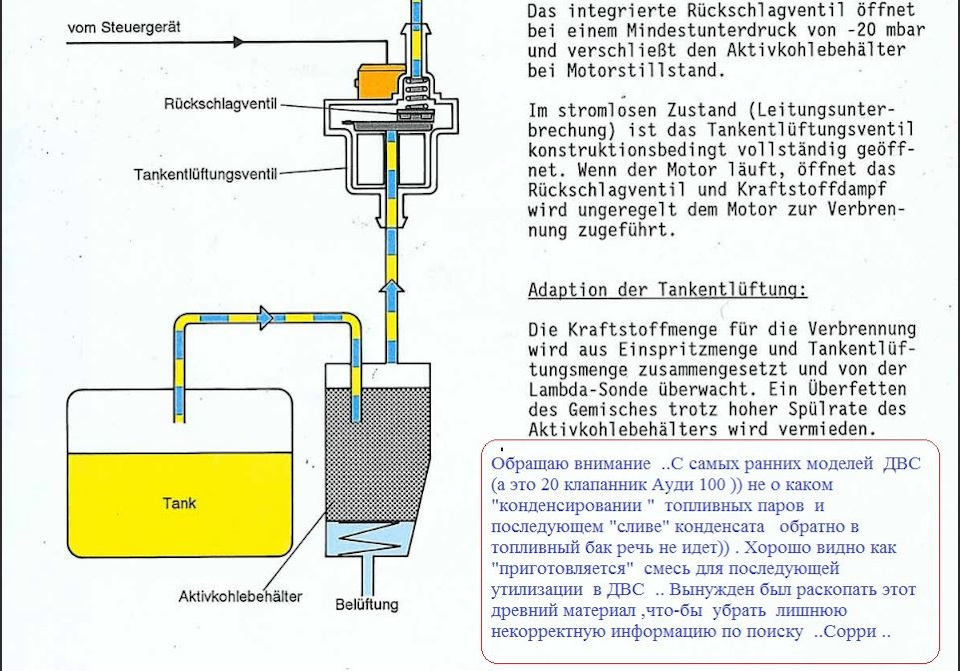 По- моему разумению не правильно, то что этот момент не охвачен на просторах интернета . Как –показывает практика выход из строя системы вентиляции топливного бака приносит неприятности владельцам далеко не только немецких машин … Лень рассматривать этот вопрос отдельно преследовала и Вашего покорного слугу до последнего, однако все имеет меру терпения как выяснилось )) Возможно Вы дополните своими наблюдениями по данной проблеме, я надеюсь в итоге мы придем к взаимопониманию по этому вопросу и не будем больше тратить Ваше здоровье и время решая его в дальнейшем ))
