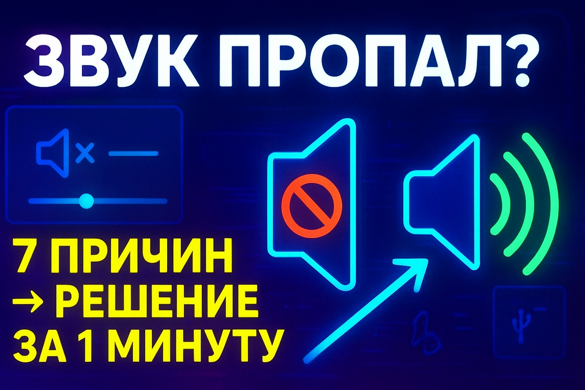 «Звук? Не, не слышал.» Эта глава — ваш спасательный круг, когда компьютер решил сыграть с вами роль немого кино. Чтобы: Почему пропадает звук? Причины бывают трёх типов: Но ничего! Сейчас разорвём этот узел 🪓. Windows любит выбирать устройство рандомно, как будто играет в лотерею. Профессиональный ИТ-лайфхак: