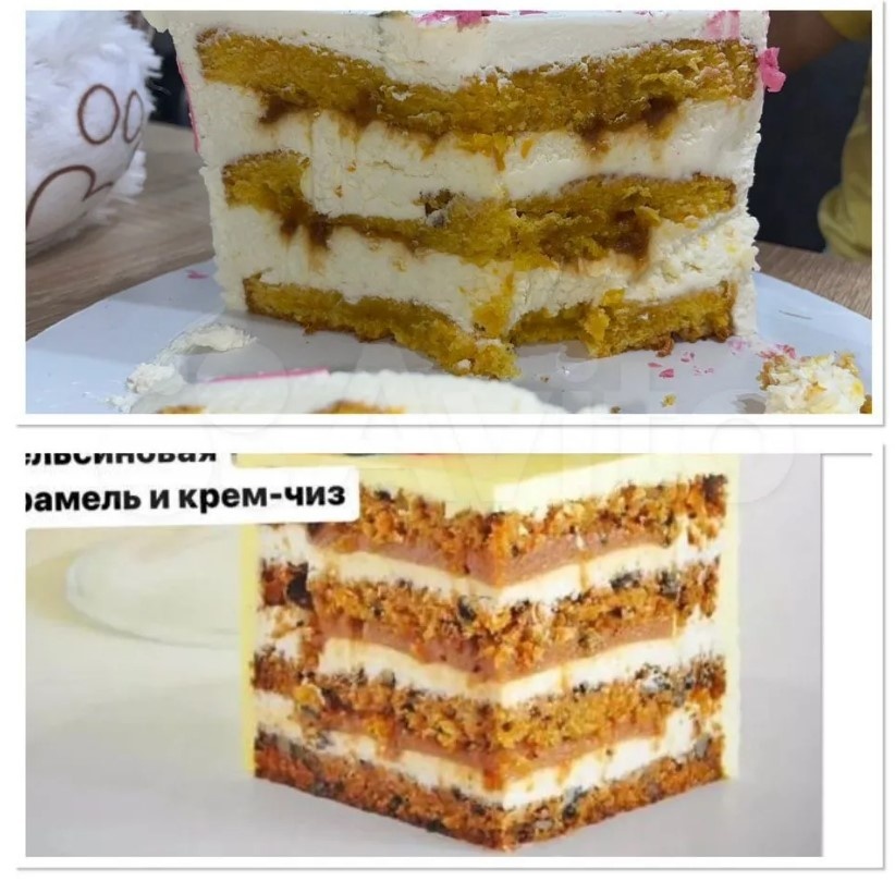 Добро пожаловать тем, кто еще не подписан!❤️ "Здравствуйте! Вообще я не любитель писать отзывы, но такого торта за 4000 рублей я еще не ела. Начнем с размера. Торт меньше 20 см в диаметре, чуть больше 10 см в высоту, при весе в 2 кг 300 грамм. Когда забрали этот торт, мама сказала, какой-то маленький, потому что не первый раз заказываем двухкилограммовый торт, и всегда они были шире и выше. Взвесили, вес совпадает. Успокоились, решили дождаться, когда будем пробовать, надеялись там увидеть супер пропитанные коржи. Разрезали торт и ох… ли честно говоря, коржи приплюснутые, разной толщины, они как сырые, и это не назвать влажным бисквитом, как сейчас делают, они либо залиты водой, сиропом или не знаю чем, либо они совсем не поднялись в духовке, но кондитер решила, что и так пойдет. Никакой воздушности, просо плотная масса. Нижний корж вообще был сырой, тесто не пропеченное.