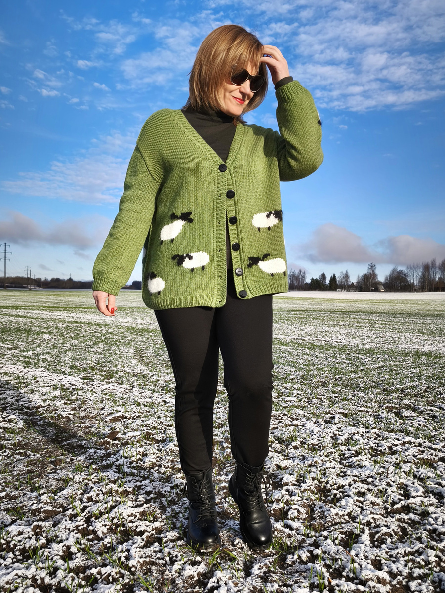 Да, все овечки в моем стаде остались белоснежные - так захотела Виктория - будущая хозяйка кардигана. Иногда я все-таки прислушиваюсь к мнению тех, для кого вяжу. 😜 Хотя нереализованную идею немного жаль...