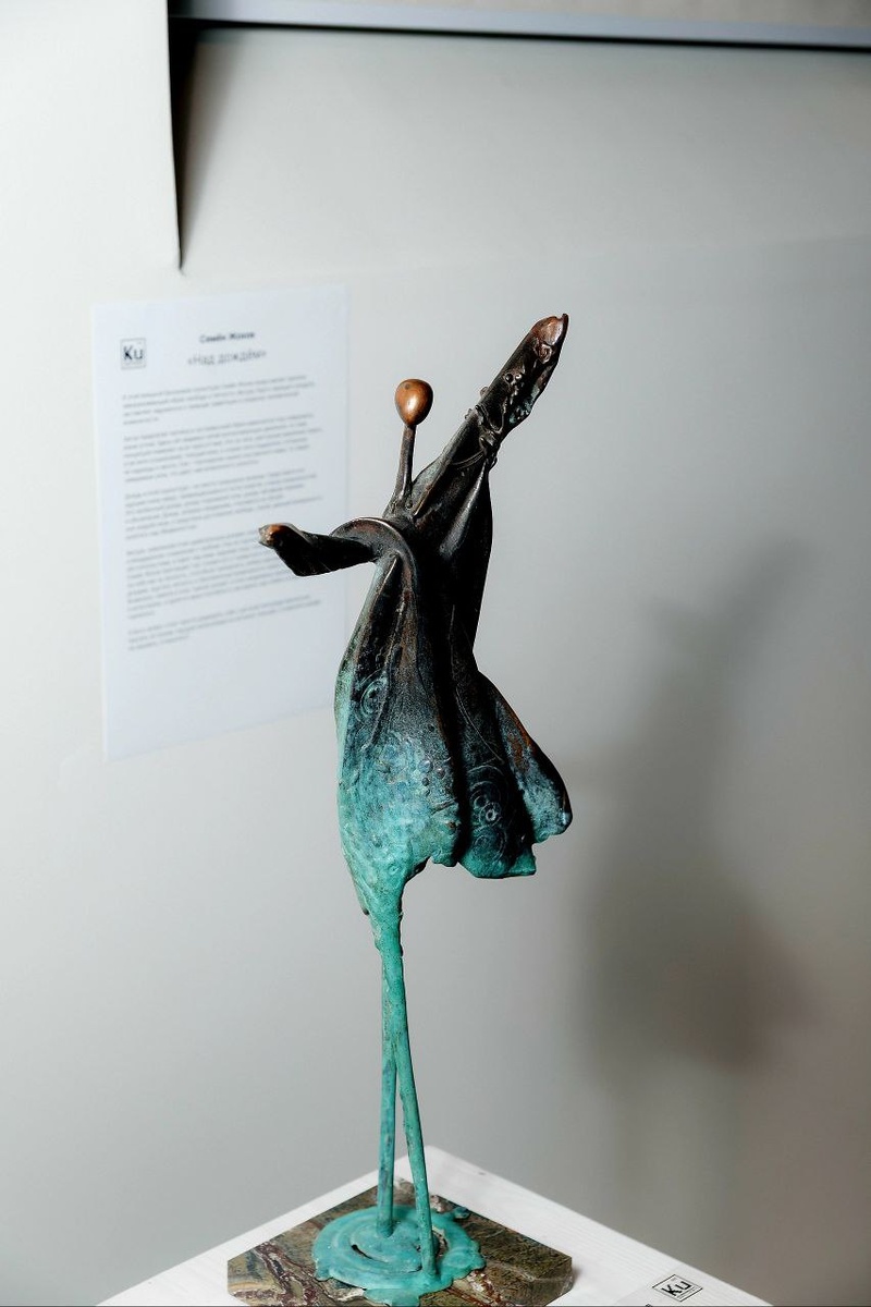 В этой изящной бронзовой скульптуре Семён Жохов представляет зрителю завораживающий образ свободы и лёгкости. Фигура, будто парящая в воздухе, заставляет задуматься о природе гравитации и пределах человеческой возможности. Автор предлагает взглянуть на привычный образ марионетки под совершенно иным углом: Здесь нет видимых нитей контролирующих движение, но сама концепция намекает на их присутствие. Это не нити, диктуюшие движения сверху, и не нити-ограничения, тянущие вниз, а скорее нити поддержки, сотканные из надежды и мечты. Они – порождение нашего внутреннего мира, те самые невидимые силы, что дают нам возможность взлететь. Дождь в этой скульптуре – не просто природное явление. Представьте его идущим снизу вверх, превращающимся в поток энергии, в вихрь возможностей. Это необычный дождь, дождь-подъемная сила, дождь-метафора перемен и обновления. Дождь, вопреки ожиданиям, становится не обузой или неудобством, а средством достижения свободы, силой, дающей возможность взлететь над обы