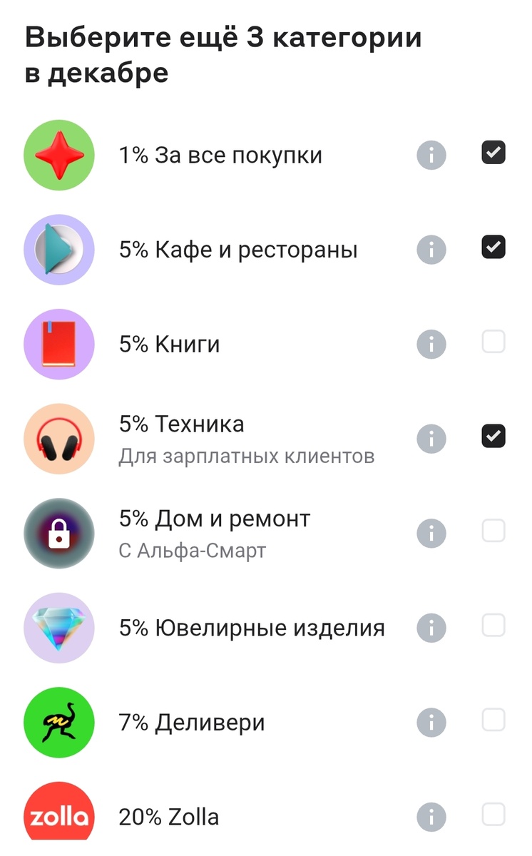 Категории кэшбека на декабрь
