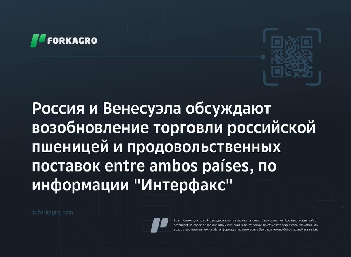 Россия и Венесуэла обсуждают возобновление торговли российской пшеницей и продовольственных поставок entre ambos países, по информации