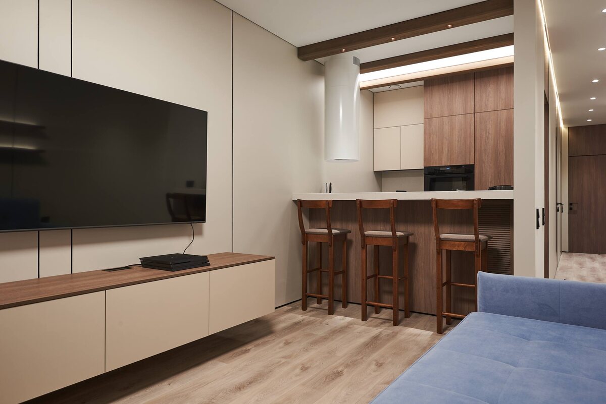 ⚡️Идеальная квартира в ЖК «Кислород». Посмотрите, как можно собрать цельный современный интерьер даже на компактной площади ↓ Наше до: новостройка 44,52 м² с пустыми стенами и стандартной отделкой от застройщика. Запрос клиента: нужно создать уютное пространство без тесноты, продумать освещение, зонирование, места для хранения. Что сделали? Собрали минималистичный, но теплый интерьер с акцентом на фактурах: — встроили световой профиль, чтобы задать настроение по всей квартире — нанесли декоративную штукатурку, которая добавляет глубину стенам — уложили керамогранит в санузле — выбрали кварцвинил для всей квартиры: практичный, долговечный, идеально ровный — подобрали и установили мебель, чтобы интерьер выглядел завершённым и гармоничным 📌Срок реализации: 140 дней. 📌Стоимость: 131 514 ₽ / м² Еще больше деталей ремонта в комментариях 🙌