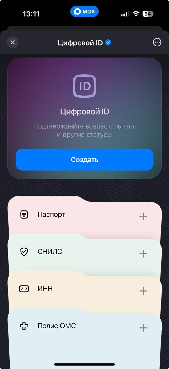 🇷🇺 В Max запустили Цифровой ID, где будут собраны основные документы россиянина