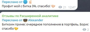 🟢 Это отзывы из группы "Расширенная аналитика". У большинства с последних двух сделок по S&P500 и биткойну подписка отбилась на год. Стоимость всего 83 руб в день. 🚗 В канал "Расширенная аналитика" Вы можете вступить через бота: @Bogdanoffinvestbot ☺️ Промокод MIGA дает 15% скидки! Если оплаченная подписка уже есть, то при новой оплате, дни будут суммироваться.