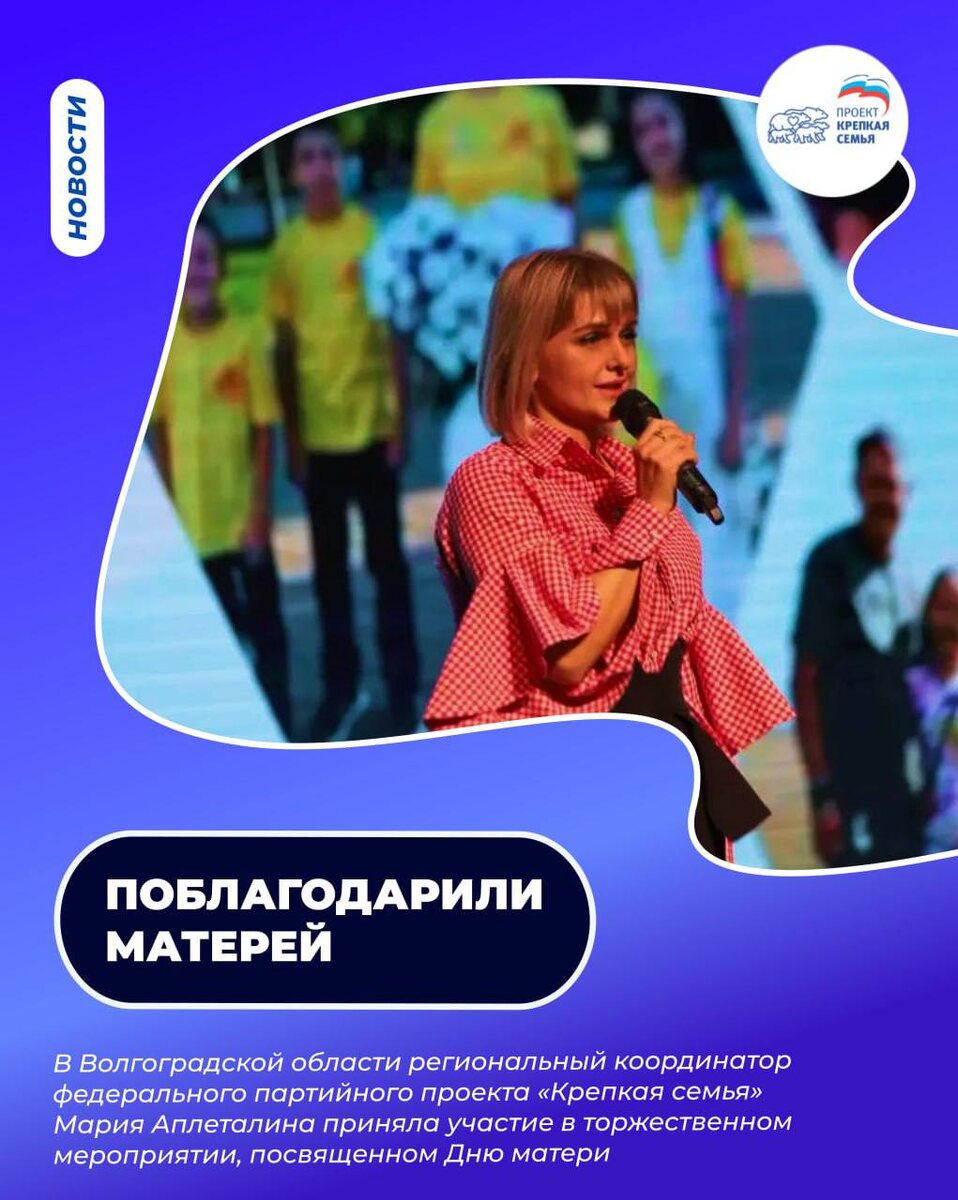 👏 В Волгоградской области поблагодарили матерей ✅ Региональный координатор федерального партийного проекта «Крепкая семья» в Волгоградской области Мария Аплеталина приняла участие в торжественном мероприятии, посвященном Дню матери. 💬 «В этот особенный день хотелось выступить не как депутату, а как женщине, как дочери, просто как человеку и сказать от всего сердца, от имени всех детей — простое и искреннее: спасибо, мама» —поделилась Мария Сергеевна. ⭐️ Помимо искренних слов благодарности, в рамках вечера состоялась торжественная церемония награждения многодетных матерей почетным знаком «Материнская слава». ✨ Подобные мероприятия — дань уважения мамам, чья любовь — самый главный урок доброты, который дети пронесут через всю жизнь! #КрепкаяСемья #ЕдинаяРоссия #ТатьянаБуцкая #ЕР #ПартийныеПроекты #КС #ДеньМатери #ЕР34