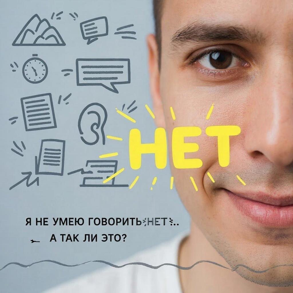 Знакомая вам фраза? Внутренний возглас, который вырывается, когда коллега просит вас поработать за него в выходные, когда друг просит в долг последнее, а знакомый раз за разом выбирает вас в качестве жилетки для своих трёхчасовых монологов. «Что поделать, я такой безотказный», — с грустной улыбкой оправдываетесь вы перед самим собой. А теперь давайте проведем небольшой эксперимент. Представьте, что вам предлагают: Прыгнуть с парашютом 🪂 — Ваша реакция? «Вы что, с ума сошли?!» Проехаться в лифте с тигром 🐅 — «Нет, ну это уже перебор!» Съесть суп из личинок шелкопряда — «Я вообще на диете!» И что мы видим? Умение-то есть! И даже очень 😏 Произносится то самое, твердое «нет», без тени сомнения и угрызений совести. Так в чем же разница? Почему в одной ситуации мы уверенно отстаиваем свои границы, а в другой — молча сгораем от негодования? Правда в том, что это — не проблема границ. Это проблема контакта с собой. Мы привыкли думать, что говорить «нет» — это борьба. Война с окружающими,