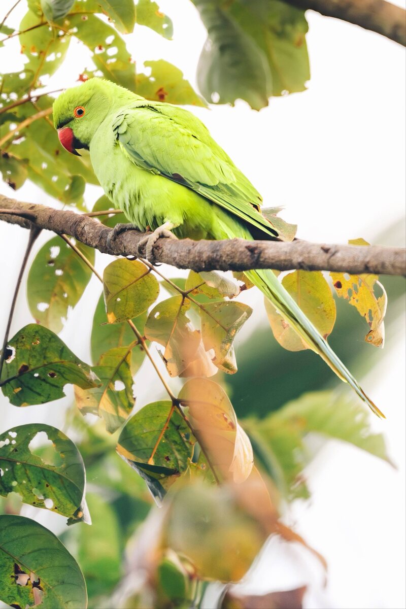 🌿 Индийский кольчатый попугай - встреча на рассвете 🦜 Этих зелёных красавцев мы видим не так часто. Но у них есть свой маленький график - примерно час на рассвете, а вечером - около часа на закате. Именно в это тихое время я и заметил её - аккуратная зелёная тень среди пальмовых листьев. ☀️🌴 Она сидела на пальме, прямо у дупла. Похоже на гнездо - возможно, там малыши… но это не точно! Кольчатые попугаи очень хитро прячут своё семейство. 🐣🌿 🤓 Интересные факты о кольчатых попугаях: • Один из немногих попугаев, которые легко приспосабливаются к жизни рядом с людьми. • У самцов появляется характерное «кольцо» на шее, а самки остаются зелёными и скромными. • Живут в природе до 20-25 лет - довольно долгоживущие для таких активных птиц. • Могут подражать человеческой речи - но в дикой природе предпочитают громкие крики, чтобы перекликаться друг с другом. 🔊🗣️ • Удивительно умные и осторожные - заметить их в природе всегда удача. Каждая такая встреча - будто маленькая награда за ра