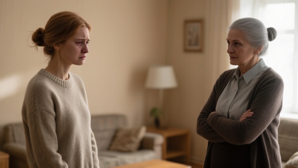 В гостиной всё было как прежде: яркий свет, скрипучий диван, свекровь в кресле напротив. Только теперь её лицо было жёстче.