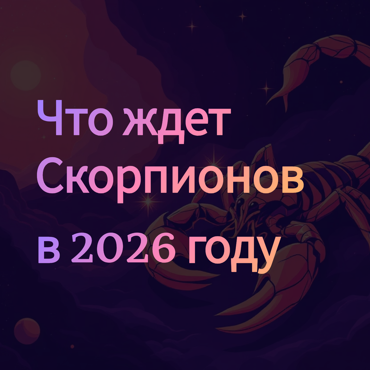 2026 год для Скорпиона приносит ощущение внутреннего разворота. Это не просто перемены, это движение к тому, что давно назревало. Год ведет вас к новым решениям в теме дома, работы, внутреннего фундамента и денег. Пространство подталкивает к тому, чтобы вы честно посмотрели на свои корни, на опору, на то, где и с кем вы живете, что несете из прошлого и к чему готовы двигаться дальше.