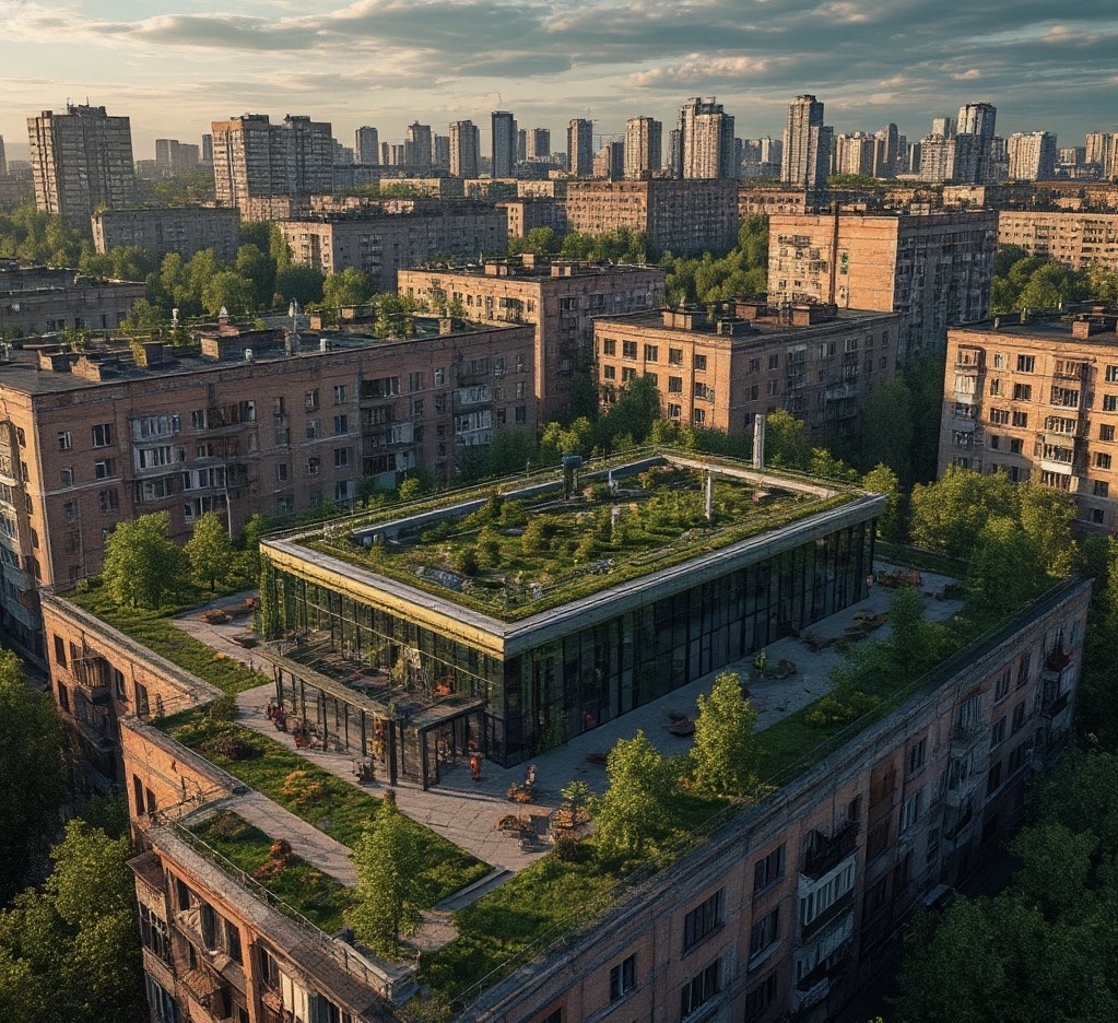 Вертикальные сады, зелёные фасады и «улицы‑лесопарки» — не дань моде, а необходимость: они снижают температуру, очищают воздух и дают еду. Балконы превращаются в мини‑огороды с автоматическим поливом и дронами, которые собирают урожай.