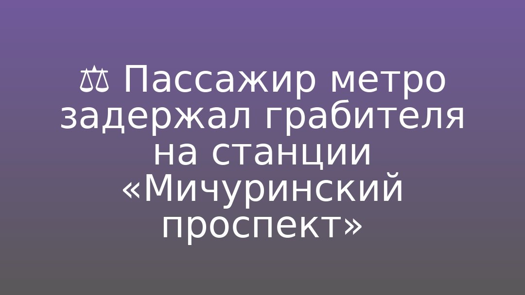 По данным МВД, мужчина открыто похитил у пассажирки телефон в вагоне метро и попытался скрыться. Очевидец догнал его на эскалаторе и передал полиции. Дело возбуждено по статье о грабеже (ст. 161 УК РФ). Официальный представитель МВД России — Ирина Волк.