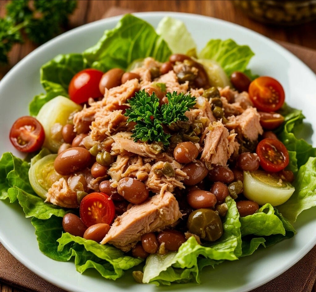 САЛАТ С ТУНЦОМ, КОНСЕРВИРОВАННОЙ ФАСОЛЬЮ И КАПЕРСАМИ Мяу, мои пушительные любители свежих салатов! 😺🥗 А вот и салат, который сочетает в себе все лучшее — сытность, свежесть и пикантность! Нежный тунец, питательная фасоль, хрустящие овощи и каперсы, которые добавляют ту самую изюминку! Идеальный обед для рыбного дня! 🐟🌱 САЛАТ С ТУНЦОМ, КОНСЕРВИРОВАННОЙ ФАСОЛЬЮ И КАПЕРСАМИ ИНГРЕДИЕНТЫ: 🧾 · Тунец консервированный (в собственном соку): 1 банка (180-200 г) · Фасоль консервированная красная: 1 банка (400 г) · Яйца вареные: 3 шт. · Лук красный: 1/2 шт. · Салат Айсберг или Романо: 1/4 небольшого кочана · Каперсы: 1 ст. лож️ба · Зелень (петрушка): небольшой пучок · Для заправки: оливковое масло — 3 ст. ложки, сок лимона — 1 ст. ложка, горчица дижонская — 1 ч. ложка, соль, перец ВРЕМЯ ПРИГОТОВЛЕНИЯ: ⏰ 15 минут СЛОЖНОСТЬ:🐾 Проще некуда ПОШАГОВАЯ ИНСТРУКЦИЯ: 👩🍳 1. Фасоль откиньте на дуршлаг, чтобы стекла жидкость. 2. Тунец разомните вилкой. 🐟 3. Яйца нарежьте кубиками. Лук нарежьте