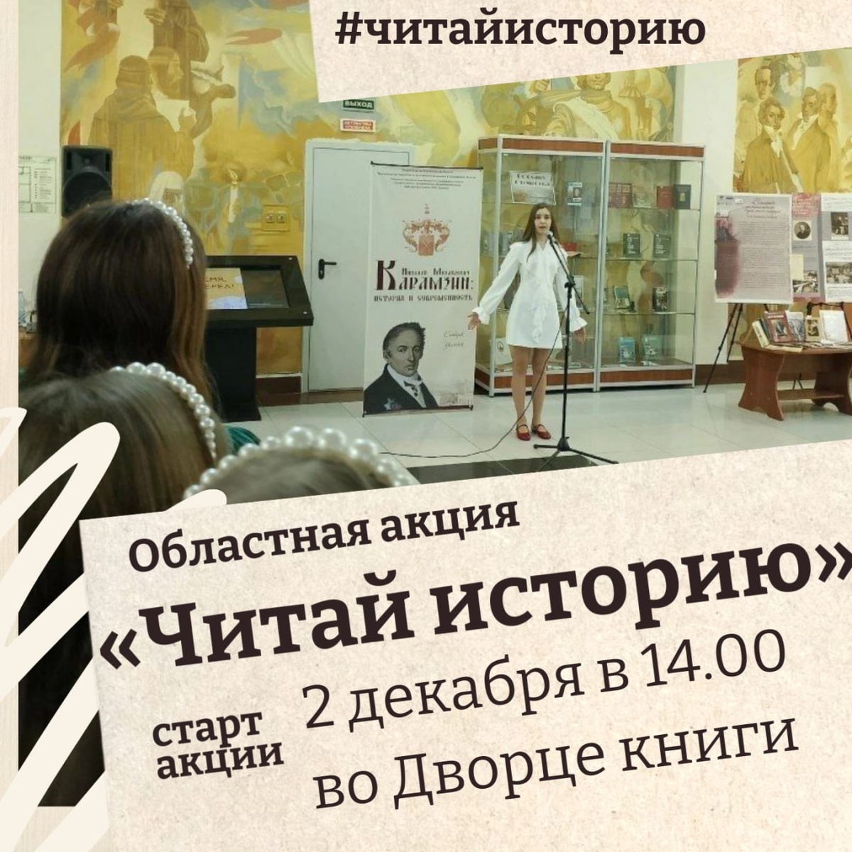 📚Дворец книги приглашает «Читать историю» 📖2 декабря в 14.00 во Дворце книги стартует областная акция «Читай историю». На первом этаже нового здания будет работать открытый микрофон. Все желающие смогут выбрать отрывок из предложенных книг и прочитать его вслух. 👉Подробнее: https://clck.ru/3QYDob ☎️Телефон для справок: 44-30-47 (Центр чтения)