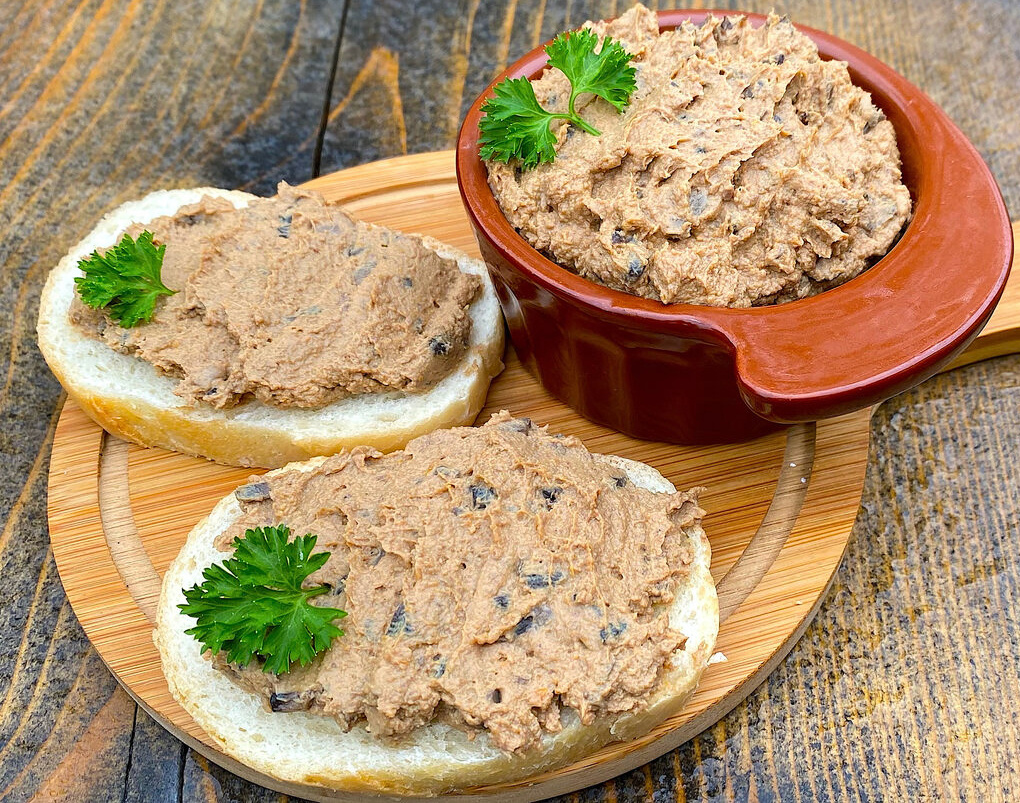 Накройте паштет пищевой плёнкой, отправьте в холодильник минимум на 4 часа, а лучше на ночь. За это время вкусы «подружатся», консистенция станет идеальной для намазывания.