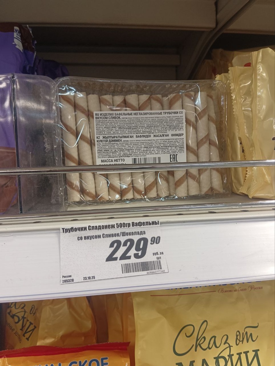 Меня постоянно пытаются кинуть на деньги. Сегодня в магазине беру трубочки вафельные за 229 рублей. Иду на кассу с полной уверенностью в их стоимости. Небольшая очередь, там какая то бабушка спорила о стоимости хурмы, уже в этот момент мне надо было насторожиться. Я чтобы не ждать перешёл на другую кассу. Пробивают мне мои трубочки и называют сумму 239 рублей. И тут я говорю : Стоп! Они стоят 229 рублей. Сходил до места где висит ценник, сфоткал. Позвали администратора, думал будет долгое разбирательство, но в итоге мне вернули разницу. Так сказать отделались малой кровью. Чтобы никто не сомневался, что это правда, прикладываю ценник и чек.