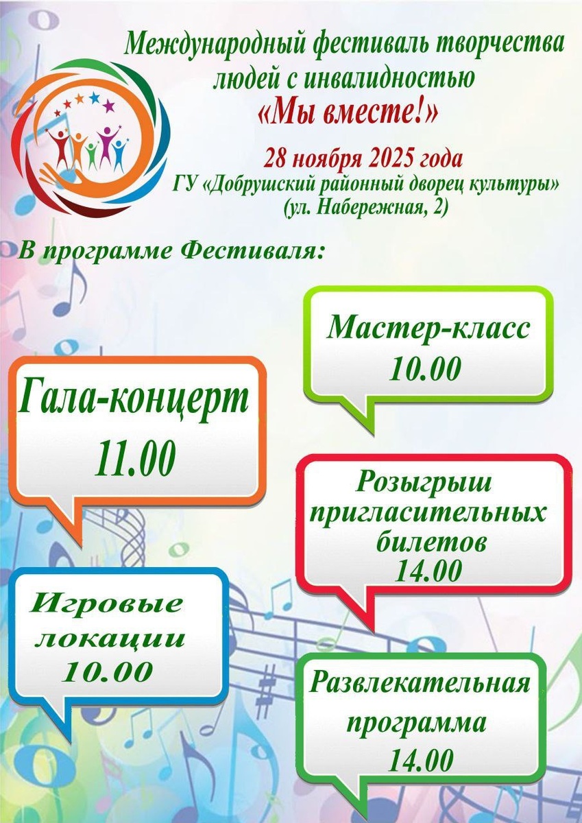 👉28 ноября в Добруше пройдет Международный фестиваль творчества людей с инвалидностью «Мы вместе