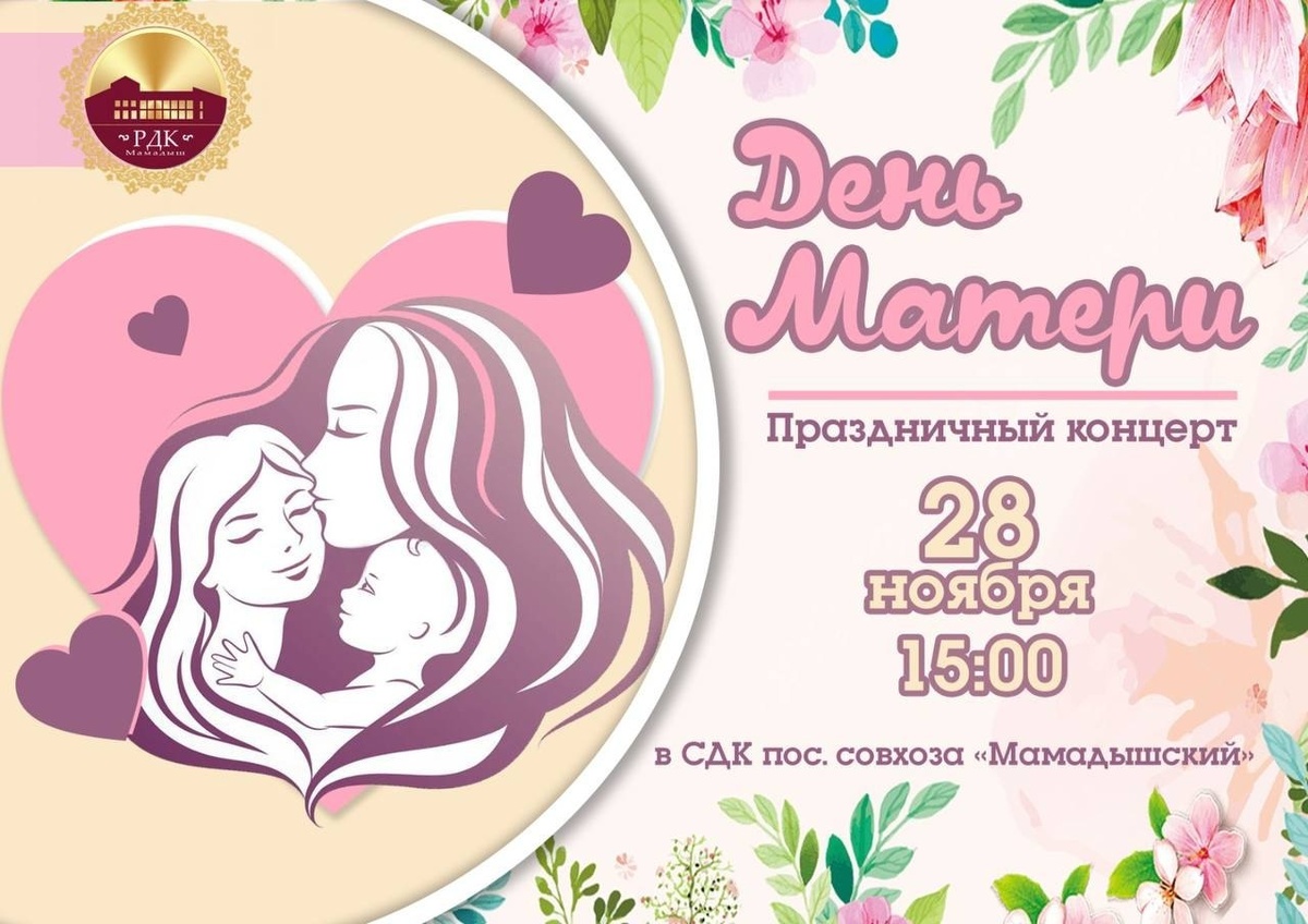 28 ноября в 15:00 в СДК поселка совхоза «Мамадышский» пройдет праздничный концерт, посвященный Дню матери