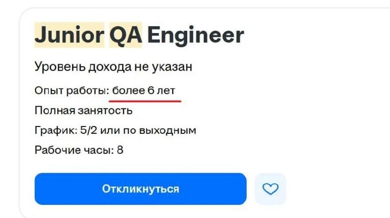Рынок труда 2025: ищем джуна с 6-летним опытом. Оклад 25 тысяч, 5 дней в офисе, 2 удалёнка, отпуск несколько дней за квартал но не подряд, ещё надо мыть полы и убирать за собакой босса! 🤖Saramudvlad | забустить 🤖