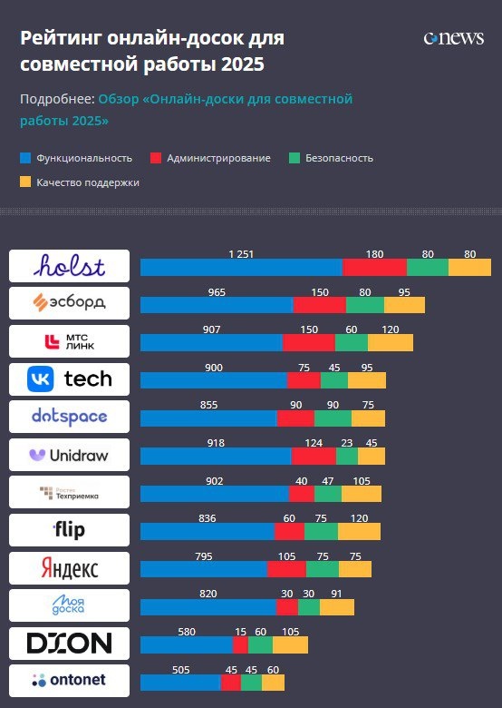 Первый рейтинг онлайн-досок для совместной работы — по версии CNewsMarket Решения оценили по 150 параметрам, и в ТОП-5 попали сервисы Holst, Эсборд, МТС Линк Доски, VK Доска и dot.sрace. Они позволили многим компаниям заменить иностранные продукты — например, Miro — и безопасно «приземлить» данные в российские дата-центры. А вы пользуетесь досками для управления задачами? «Альянс Цифровых Лидеров в стройке» в MAX
