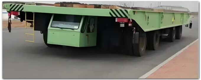 Сверхмощный автоматизированный грузовой транспорт (AGV) обычно обладает модульной конструкцией, включая систему независимой подвески на восемь колес, способную перевозить грузы от 50 тонн и более. Распределение давления осуществляется с помощью технологии гидравлического выравнивания, что обеспечивает высокую устойчивость при транспортировке. Композитное шасси, состоящее из всенаправленного колеса и колеса McNum, разработано отечественным производителем и позволяет осуществлять поворот на 90 градусов с точностью позиционирования ± 5 мм при транспортировке груза массой 100 тонн в 2-метровом канале.