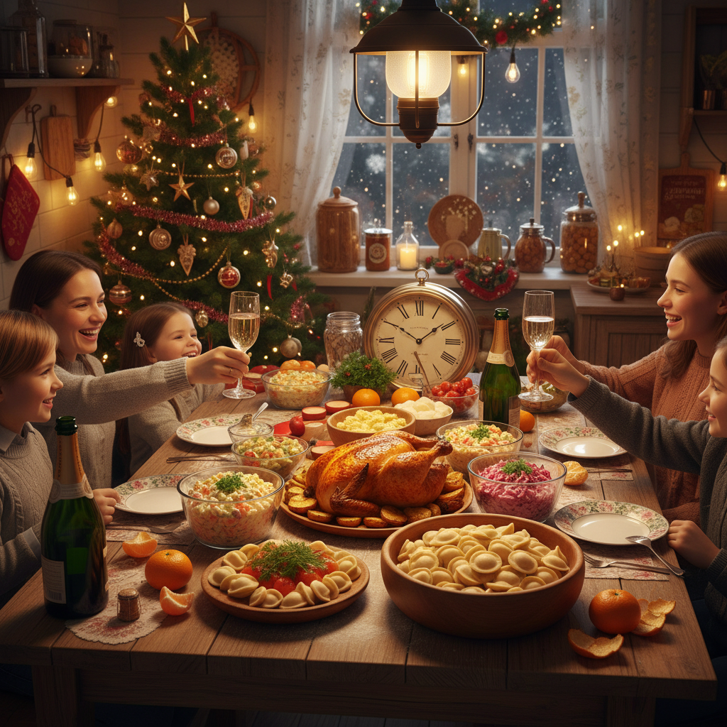 Подготовка к Новому году уже началась. В России этот праздник любят всей душой, и вот уже первые новогодние ёлки появляются в городах. Хозяйки задумываются, что приготовить на праздничный стол. А помните, как было раньше? В моей семье особенными блюдами считались запечённая курица с картошкой или домашние пельмени. Конечно, салаты и тортик. Мандарины не были проблемой — мы жили на юге. А вот достать шампанское порой оказывалось очень сложно. Зато сейчас выбор огромный — бери что хочешь, на любой вкус. И вот думаешь, чем удивить себя и родных на праздники. Может, и не стоит удивлять едой? Наготовишься, устанешь и будешь клевать носом за столом. Гораздо важнее отдохнуть и встретить Новый год с хорошим настроением.