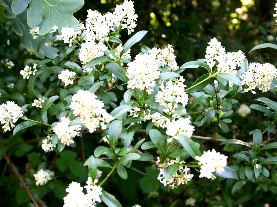 Цветы: Бирючина цветет в июне-июле, образуя многочисленные метельчатые соцветия. Цветки мелкие, белые или кремовые, с приятным, но довольно сильным ароматом, который может быть как привлекательным, так и несколько навязчивым для некоторых людей. Каждый цветок имеет трубчатый венчик с четырьмя лепестками.