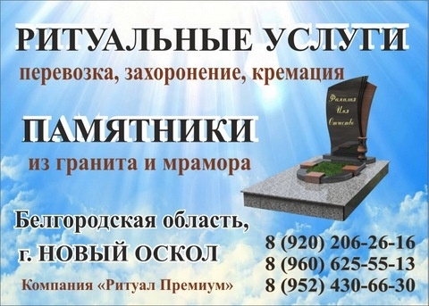 "Ритуал Премиум": ритуальные услуги, памятники из гранита и мрамора в Белгородской области и Новом Осколе