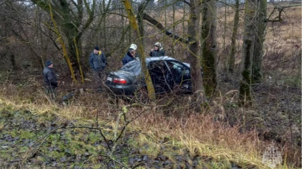 На брянской трассе спасатели вырезали человека из вылетевшей в кювет легковушки