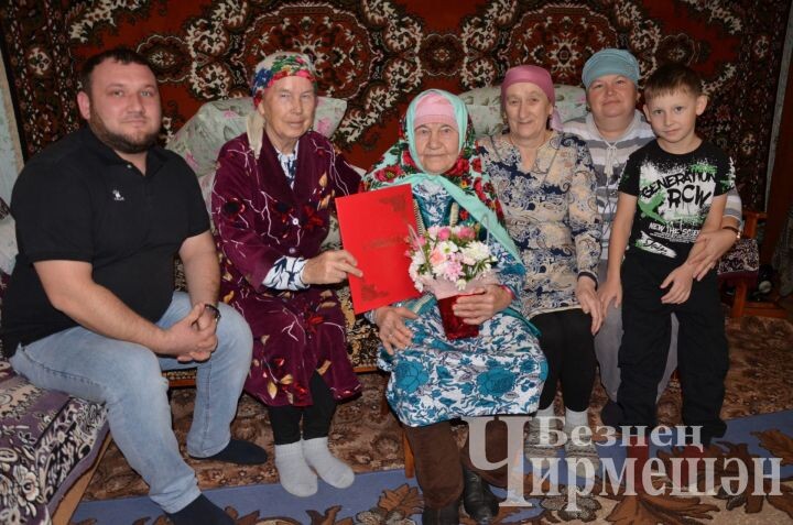 В ноябре Зариге эби из Верхней Чегодайки исполнилось 90 лет. Гостям, приехавшим поздравить ее с этим большим праздником жизни, она по-прежнему полным сил голосом, исполнила песню. Для нее песня всегда была не просто увлечением, а опорой и верной спутницей, помогавшей преодолевать все жизненные трудности. - 13 лет я пасла табун в колхозе. Пела даже в поле, - просто говорит она, вспоминая свою молодость. Вся жизнь Зариги Давлетшиной была отдана труду в колхозе. Как говорит сама ветеран: с фермы – на поле, с поля – на ферму. Работе она отдавала себя без остатка. - Сынок, я работала 42 года, ни дня не была в отпуске. Для нас не было ни Сабантуя, ни Нового года, ни Октябрьских праздников. И коров доила, и за телятами ухаживала. Сначала приглядывала за цыплятами, потом - за кроликами, поголовье которых достигало 250, - вспомнила годы работы в колхозе Зарига эби. С 90-летним юбилеем ветерана, прошедшего такой славный и трудный жизненный путь, приехал поздравить первый заместитель руководител