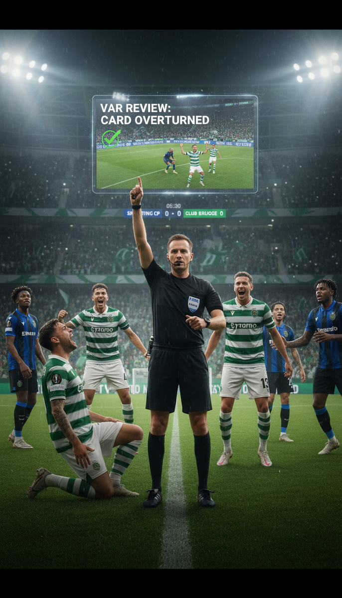 Едва Спортинг не остался вдесятером в самом начале матча. Но ВАР спас португальцев, отменив решение главного арбитра. В полном составе лиссабонцы не оставили шансов соперникам из Брюгге - 3:0.
