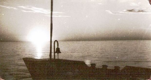 Не откладывая в долгий ящик, мы радостно «отметили» выход в море. Правда, наш оптимизм поубавил зашедший к нам Саня - матрос 1 класса, рассказавший о гибели СРТ «Гейзер». Этот рассказ врезался в память, я записал его. Но молодые долго грустить не любят, трагических случаев к себе не примеривают. Вышли на палубу. Наш очнувшийся от радикулита романтик Толя, кругами ходил по вертолётной палубе, вздымая к небу руки, и с подвыванием театрально декламировал: «О, море, море! Здравствуй море!». Остальные, не способные на открытое выражение сантиментов, подсмеивались над ним, но разделяли его восторг от этой бескрайней шири, яркого солнца, солёного ветра, светло-голубых пенных бурунов винта за кормой, парящих чаек…