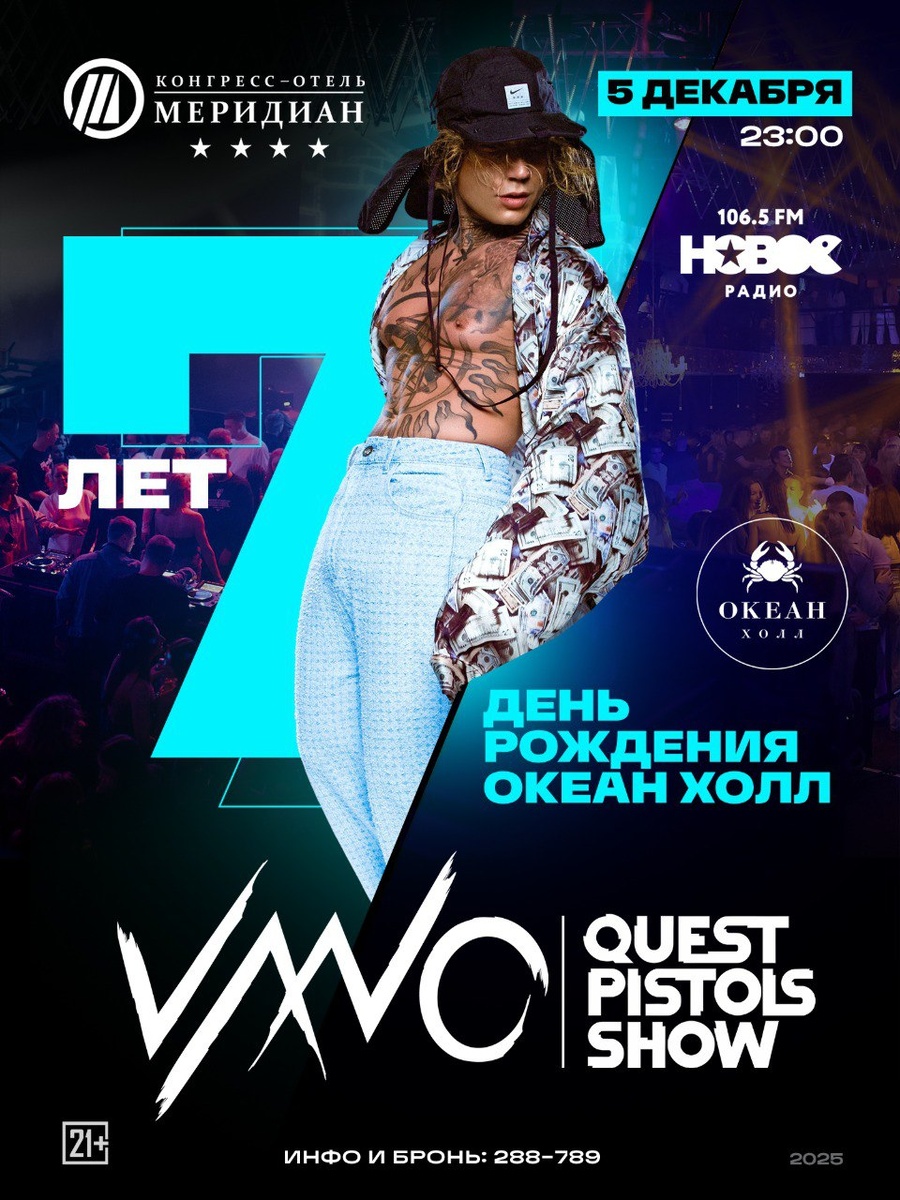 5 декабря | VA.NO | День рождения Океан Холл Отмечаем День рождения Океан Холл - нам 7 лет! Специальный гость ночи - VA.NO ex. участник Quest Pistols! VA.NO — солист и участник легендарной группы Quest Pistols Show с мощными бэнгерами, чей голос звучит в треках «Санта Лючия», «Непохожие», «Мокрая» и другие. Билеты по ссылке👇: https://murmansk.qtickets.events/197174-club-show-vano-okean-hall-nam-7-let Бронь столов по телефону 288-789 ❤