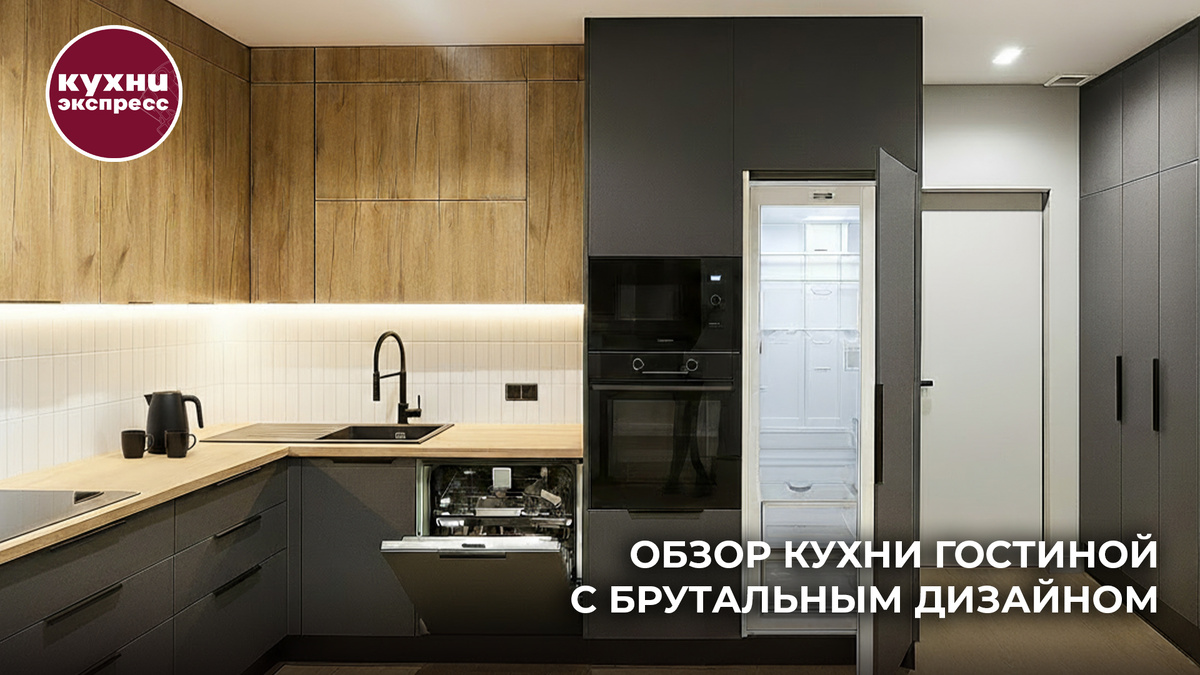 С первого взгляда эта кухня берёт спокойной уверенностью. Низ — глубокий графит, верх — тёплое дерево, между ними — светлый фартук с вертикальной раскладкой и ровная линия подсветки. Планировка Г‑образная: готовить, мыть и раскладывать продукты удобно по одной дуге. Встроенная техника собрана в пеналы, а чёрный смеситель и раковина поддерживают графитовый акцент. Поверхности выглядят опрятно, не боятся влажной уборки и легко очищаются от следов готовки мыльным раствором. изготовлены из усиленной стали толщиной 2 мм — не погнутся и не сломаются при ежедневной нагрузке;