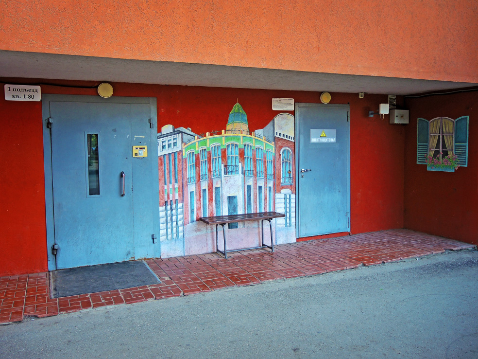 Продолжаю серию обзоров образцов уличного искусства Самары. Сегодня приглашаю на очень отдалённую от стандартных, да и нестандартных, туристических маршрутов точку. Настолько отдалённую, что даже я, коренной житель города, оказался тут впервые в жизни совершенно случайно. Улица Вольская, дом 89. Пересечение с улицей Калинина. Более понятный ориентир - озеро в Молодёжном парке. Этот перекрёсток находит в квартале от него. Именно к нему (озеру) я и шёл таким окольным путём. И, повторюсь, совершенно случайно увидел, что входные группы подъездов этого многоквартирного жилого дома со стороны улицы (двора) оформлены очень интересными рисунками. На них изображены памятники архитектуры Самары в стиле модерн. Дополнены они информационными табличками и другими рисунками, создающими общую романтическую атмосферу. На табличках указан и автор - Ольга Якунина. Рисунки выглядели совсем свежими. Обнаружил их в конце сентября 2024 года. Вполне можно предположить, что нарисованы они были незадолго до эт