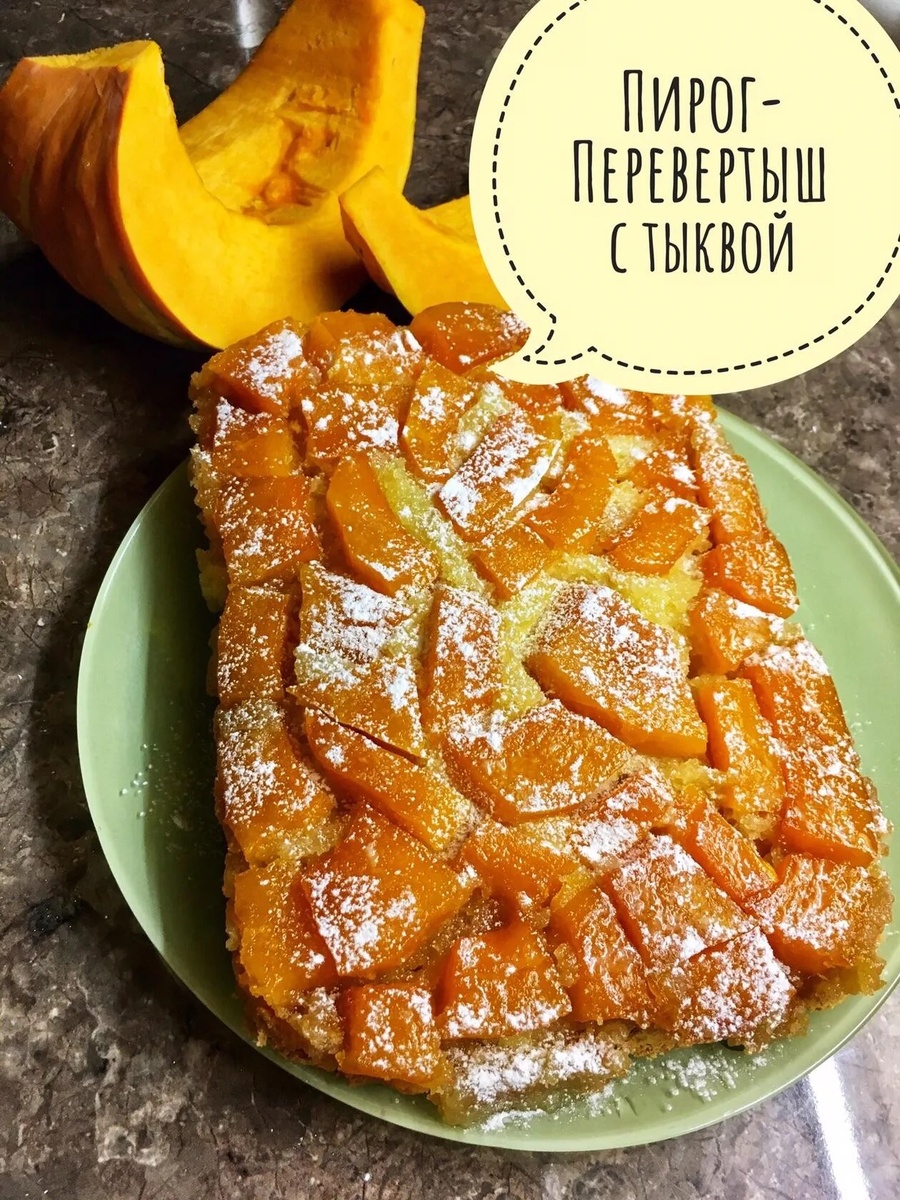 🤩Зима...🎃Тыква...🥧Пирог... Пирог-перевертыш. Карамельный! Из очень сладкой тыквы🧡 👩🏻🍳Ингредиенты: 400 г мякоти тыквы 70 г сливочного масла 400 г сахара 1 стакан муки 3 яйца ванилин разрыхлитель 👩🏻🍳Приготовление: 1. В форме, в которой будет выпекаться пирог, растапливаем сливочное масло, высыпаем 150 г сахара и хорошо перемешать до однородной массы. Сверху выкладываем довольно крупными кусками тыкву, и в духовку при 180 – 200° на 20 минут (за это время тыква должна стать мягкой). 2. Пока тыква в духовке – готовим тесто: три яйца взбить со стаканом сахара миксером до пышной массы. Добавить стакан муки и разрыхлитель. 3. Далее тыкву достать из духовки и присыпать ванилином. И равномерно распределяем тесто поверх тыквы. Отправляем обратно в духовку на 25 – 30 минут. 4. Готовность пирога проверить лучинкой. Она должна быть сухой. Готовый пирог отделить по краю формы и аккуратно перевернуть на блюдо. Сверху пирог присыпать сахарной пудрой. И можно пить чай с обалденным пи