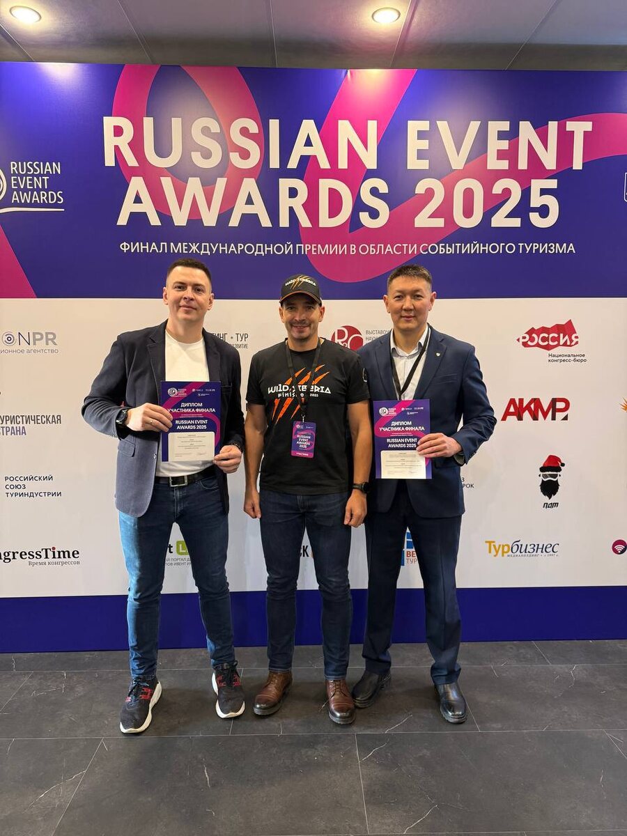 Айдар Мызин, Дмитрий Симагин и Антон Рябчиков на защите Всероссийской туристической премии «Маршрут года» Wild Siberia – только вперед! 🚀