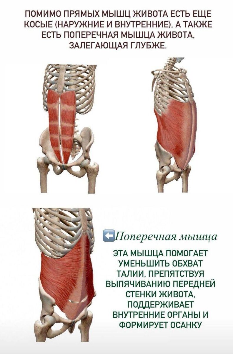 Выпирает живот после родов Начнем разбирать причины, наиболее знакомой женщинам после родов! Потому что ДО родов, никто не обращает на нее внимания и вроде до 30-35 лет живот и не торчит 🤔 В нашем теле есть очень классная мышца — ПОПЕРЕЧНАЯ. Посмотрите на прикрепленную картинку. Похожа на корсет, согласны? И функции она выполняет «корсетные»: ✅ обеспечивает стабильность поясницы и таза , наш внутренний стабилизатор. ✅контролирует распределение давление внутри живота, удерживает нас живот в правильном положении ✅ служит опорой для внутренних органов У органов грудной клетки есть костная структура для защиты, а у брюшной полости, только поперечная мышца живота. По этому правильная её работа, влияет не только на внешний вид, но и на здоровье. Если она не ослаблена и правильно функционирует, то у вас будет: ✅Тонкая талия ✅Плоский живот ✅Не будет болеть поясница ✅Не будет проблем с опущением органов ✅Не будет проблем с недержанием или запоров После родов чаще всего эта мышца ослаб