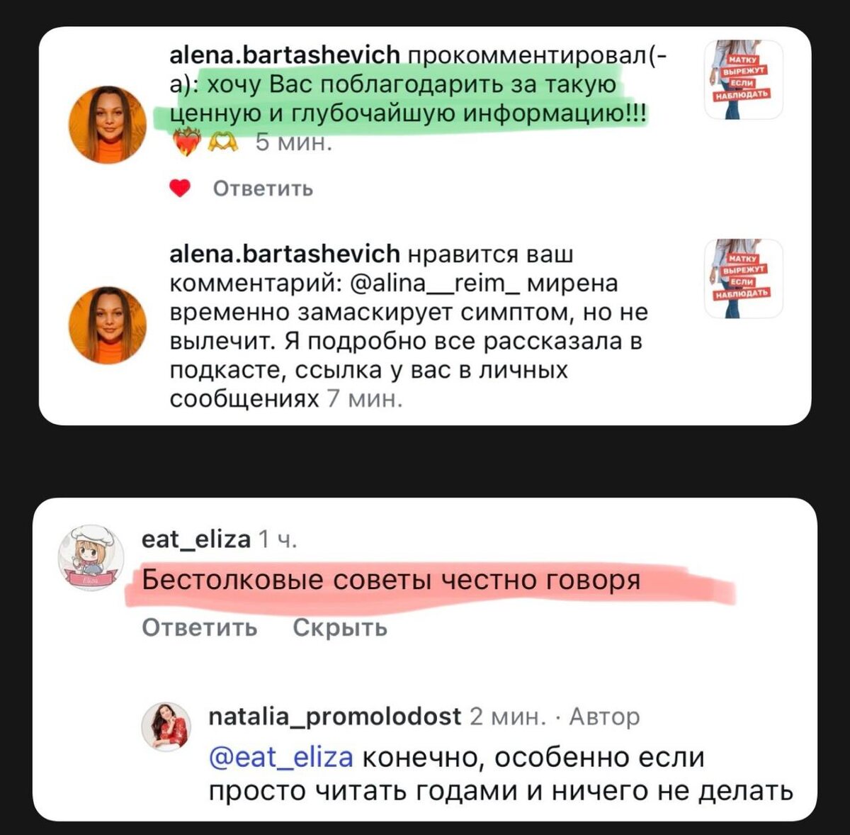 … Знаете такое стихотворение? Думаю, знаете. Мы все живем в абсолютно разных, выстроенных собственными руками, мыслями и способом мышления реальностях. И слоев реальности ровно столько - сколько в мире людей. 🔼Вот две абсолютно противоположные реакции На один и тот же подкаст про истинные причины миом, эндометриозов, аденомиозов, кист, полипов, фиброаденом и прочих женских опухолей. Как вы думаете - Кто из этих двух женщин быстрее решит свои проблемы? Ваши ставки❓ ⸻ ‼️ Как лечиться с помощью еды и вернуть себе гормональный баланс, рассказала здесь ➡️ https://dzen.ru/media/natalia_promolodost/gormonalnaia-eda-3-bazovyh-principa-naturopaticheskogo-lecheniia-edoi-694a3c700ea32c24c37818f9