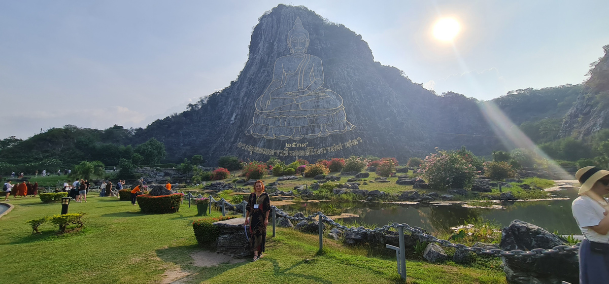 Где - то на просторах Таиланда🌄), недалеко от города Паттайя, есть высокая Гора ⛰️. На той горе Большая! Златая! статуя БУДДЫ, всем издалека видна. И золото то настоящее! Сусальное). Его добрые люди всем народом собирали, что бы любимого короля, который правил целых 50 (на тот момент) лет, отблагодарить. Такой величественный и прекрасный образ Будды символизирует просветление и является одной из крупнейших золотых статуй в мире. Место это священное и охраняют его военные. Гора Золотого Будды в Паттайе Это наскальное изображение Будды на горе Кхао Чи Чан, выложенное золотыми пластинами. Оно является одним из крупнейших в мире и было создано в 1996 году к 50-летней годовщине восшествия на престол короля Рамы IX. Гора находится примерно в 20 километрах к югу от Паттайи и является популярной достопримечательностью и также местом для поклонения. Гора скала Кхао Чи Чан Ее изначально использовали для добычи камня, но после королевского указа работы были остановлены, и на скале л