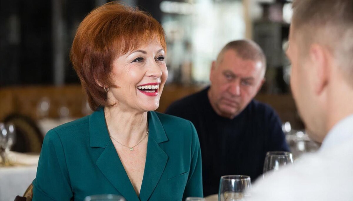 В этот момент в ресторан вошла другая женщина. Она двигалась плавно, уверенно, и от нее исходило такое сияние, что несколько человек за соседними столиками невольно обернулись. Ярко-рыжие волосы были уложены в стильное каре, изумрудный брючный костюм сидел безупречно, подчеркивая стройную фигуру. Она о чем-то весело говорила со своим спутником — высоким, седовласым мужчиной в дорогом костюме, который галантно придерживал ей дверь.