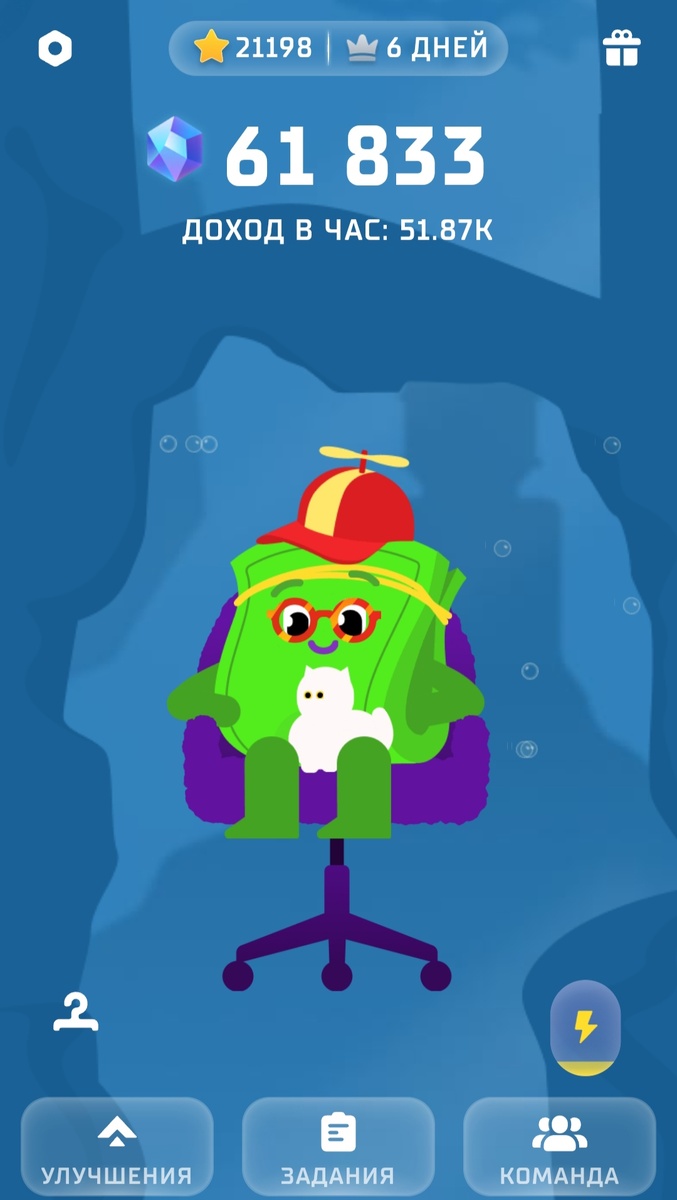 Любители сюсепусечных персонажей - вам сюда! Прагматики, надеющиеся на реальные крутые призы - увы, лучше поискать что-то другое. Итак, она звалась Денежная Котлетка.. Забавная игра, в процессе которой банк активно пытается вынудить игроков воспользоваться изрядным количеством своих, по всей видимости, не особенно востребованных опций, которые дают небольшое преимущество. Цель - денежный приз, получить который можно, последовательно пройдя 4 лиги (бронзовую, серебряную, золотую и алмазную), при этом находясь не ниже определенного места в рейтинге на момент закрытия одной лиги и возможности перехода в вышестоящую. В принципе, мне нравятся все игры Т-банка, но вещать о них желания ни разу не возникало, пока не увидела Котлетку с её миленьким белым котиком. Всё, что нужно, - тапать по экрану и собирать кристаллы для улучшений. Энергичность и забавность Котлетки зависят от заряда батареек, иначе она просто начнёт засыпать. Если заряда достаточно, то можно увидеть и белого котика, и мал