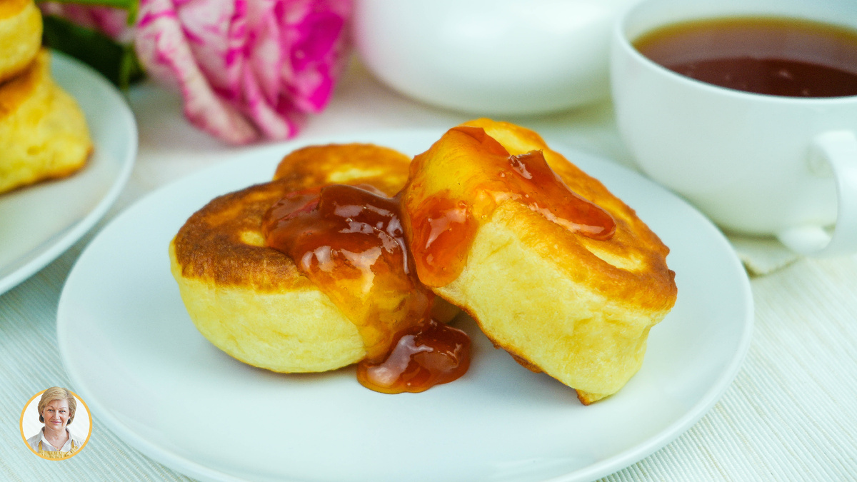 Пышные, умеренно сладкие оладьи как вкусные воздушные пончики. Их хорошо подать с джемом, медом, сахарной пудрой или сметаной.
