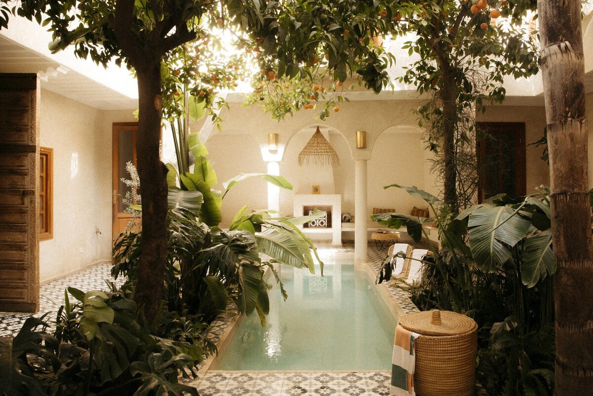 Современный марокканский стиль, в котором живут древние традиции и витает вдохновение. Несколько лет назад мы впервые оказались в Riad l'Atelier, спрятавшись за его тяжелыми дверями из состаренного дерева от суеты Маракеша. Этот визит многое изменил. Сад за резной дверью Нас встретили, как старых друзей. Атмосфера риада была по-настоящему волшебной: лепнина, лаймстоун, тени пальм, скользящие по молочно-белым стенам, тишина вечеров с мятным чаем, и закаты на крыше с видом на Атлас. Все дышало покоем, теплом и красотой — мы почувствовали, что оказались дома. Влюбленные в город Мы быстро подружились с владельцами — испанской парой, влюбленной в Марракеш. Они не просто восстановили традиционное здание, а создали пространство, в котором марокканская эстетика и современный марокканский стиль соединились в живом и честном диалоге. Сдержанно, но с душой, современно, но с уважением к традициям. Каждая деталь — от мебели до текстиля — тщательно подобрана: все говорит не о стилизации, а о насто