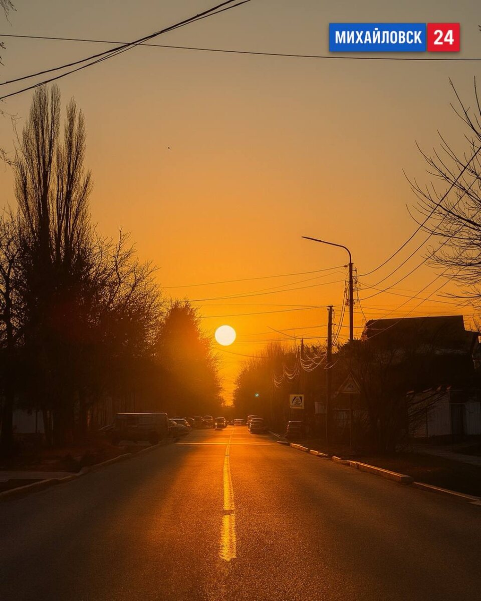 🌅 Золотой закат на улице Гагарина Вот так закат ложится на дорогу, как будто рисует новый маршрут для завтрашнего дня. #михайловск ------------------------ 🔔Подписывайся на новости Михайловска в: 📲 MAX | 💬 Тelegram ------------------------ ➕ Новости Ставропольского края
