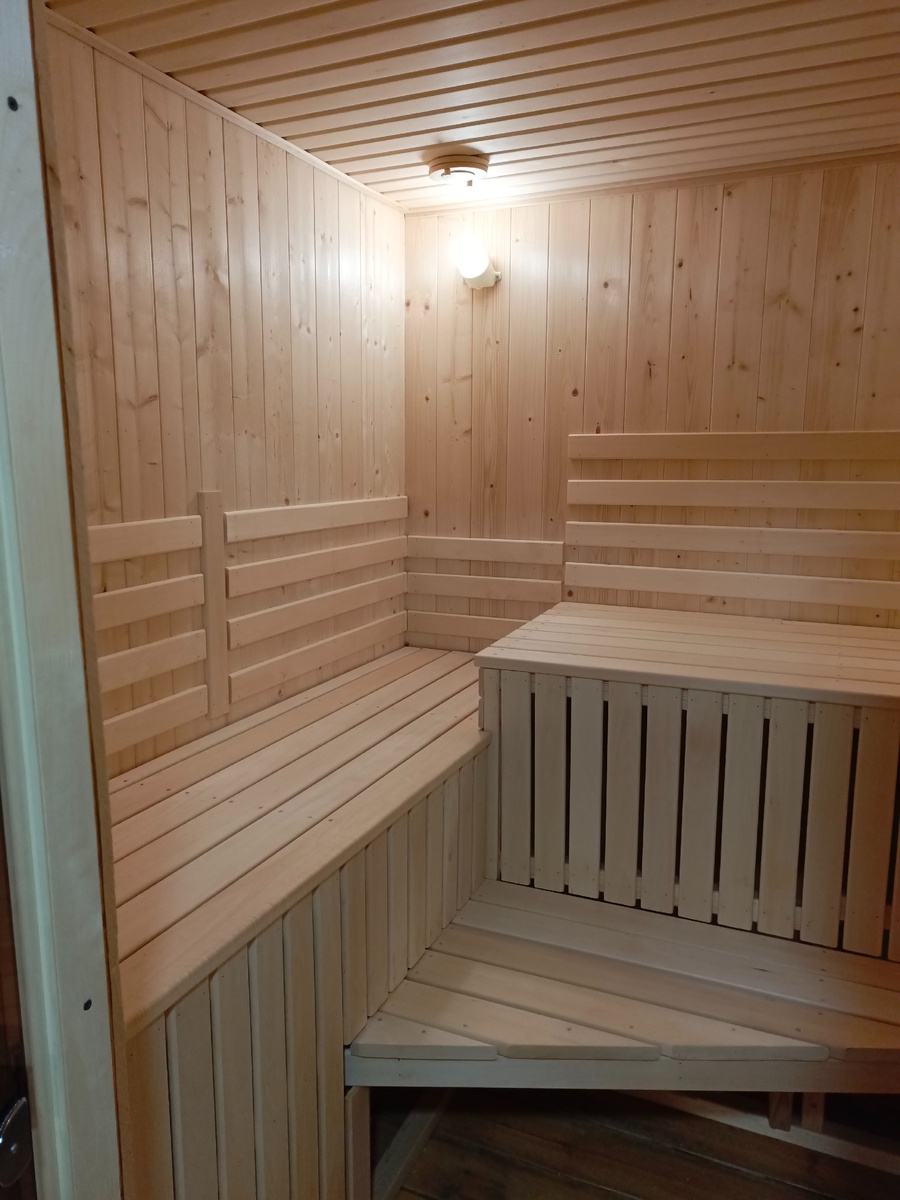 В этом году, кроме строительства и отделки деревянных домов у нас было несколько заказов по отделке и реконструкции бани. Об одном из таких объектов мы сейчас и расскажем. В Нижнем Новгороде на участке в частном домовладении мы из сарая сделали вполне приличную баню. Сооружение представляло из себя однообъемную коробку из газосиликатных блоков на бетонном фундаменте с крышей из профнастила. Мы вынесли мусор, выровняли и усилили балки пола, пропитали их антисептиком, настелили деревянные полы из строганой доски, утеплили потолок, сделали ревизию кровли, разделили баню на три части перегородками. В одной комнате парная, в другой помывочное помещение, в третьем отделе комната отдыха. В ходе работ были утеплены и обшиты деревом стены парной (потолок отделали липовой вагонкой), залит фундамент под печь, установлена сама печь с дымоходом. На печь поставили водогрейный бак самоварного типа с выводом крана горячей воды в помывочное помещение. Портал печи выложен огнеупорным кирпичом, дополните